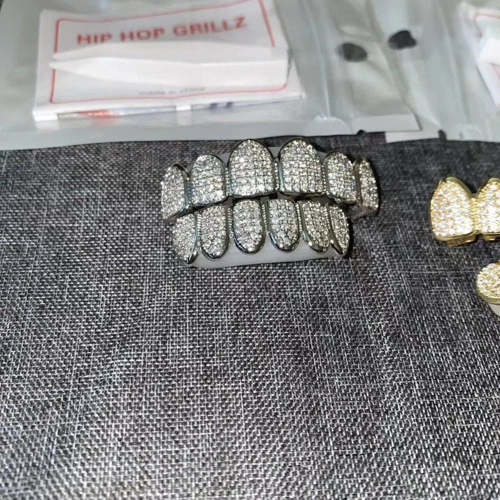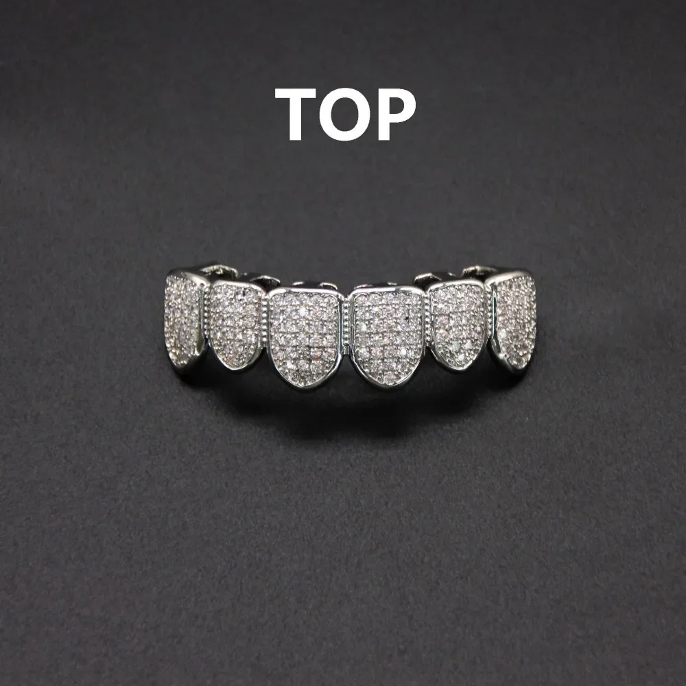 Teeth Grillz Set for Unisex Top Bottom Mouth Silver Color Teeth Grills Tooth Cap Removable Dental Fashion Body Jewelry