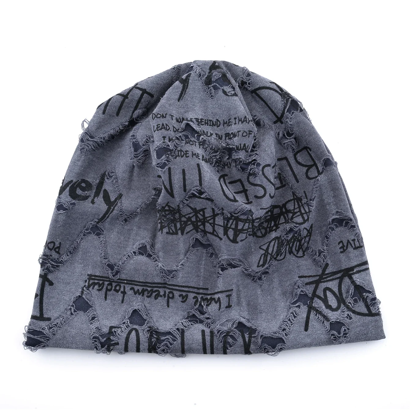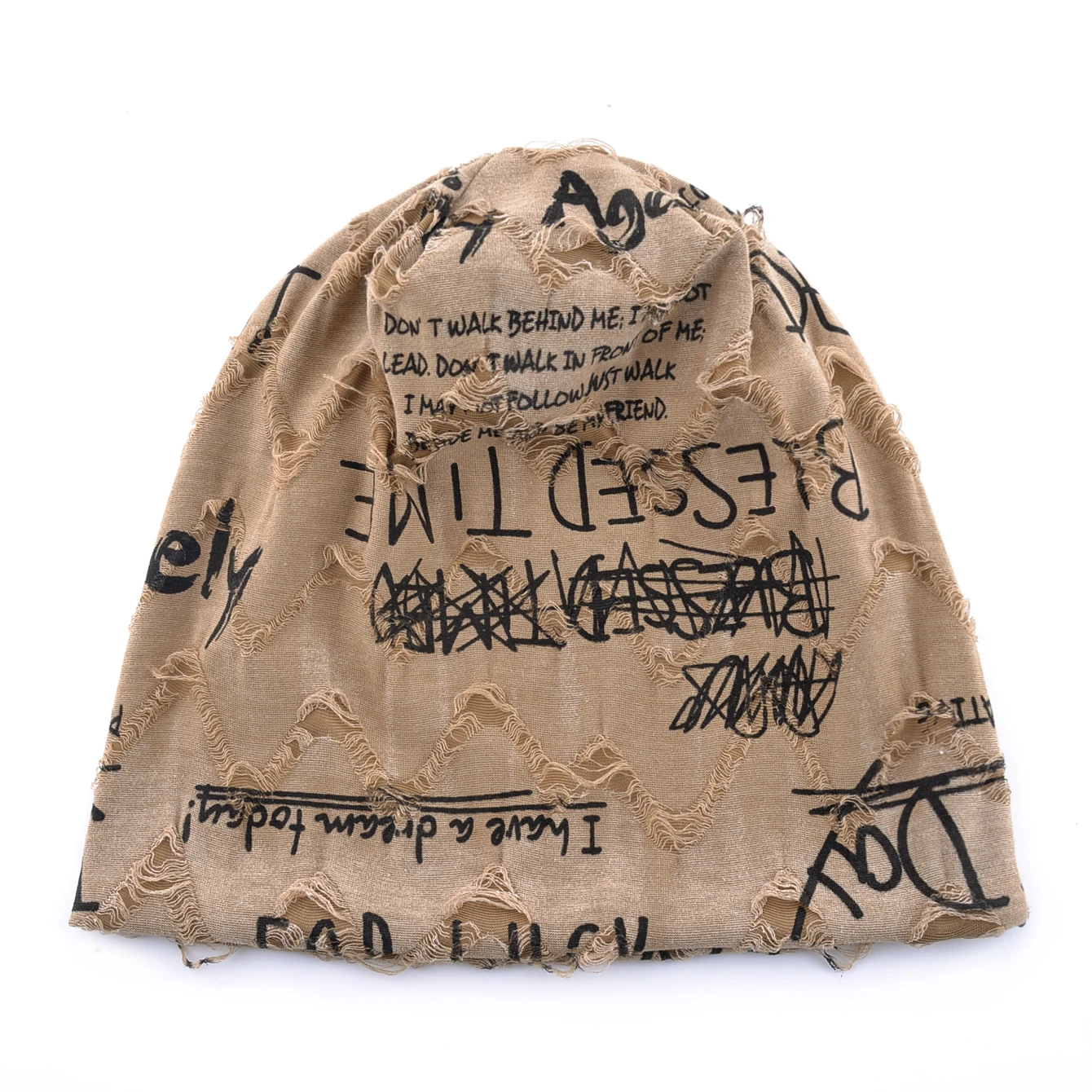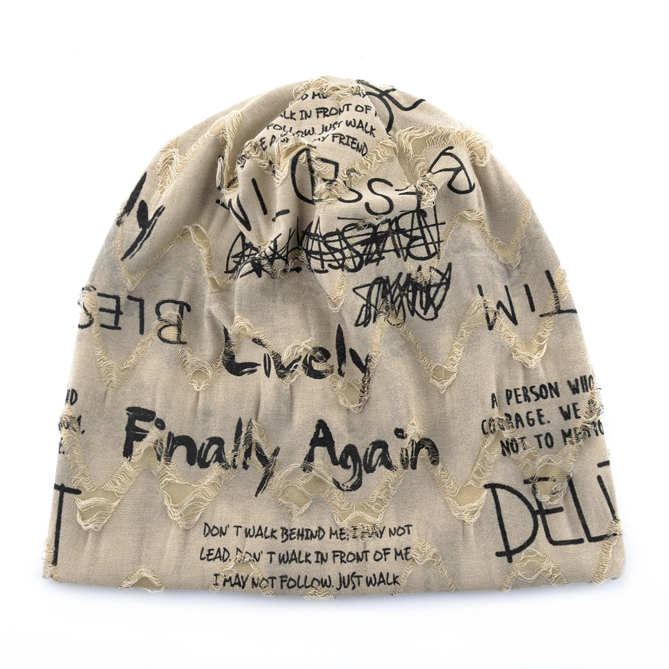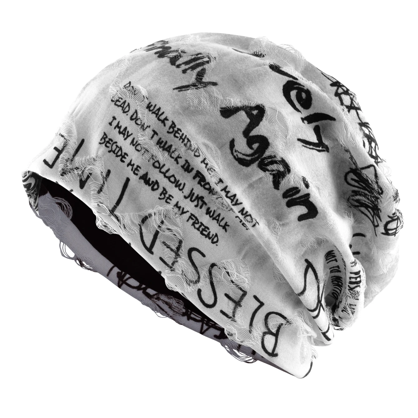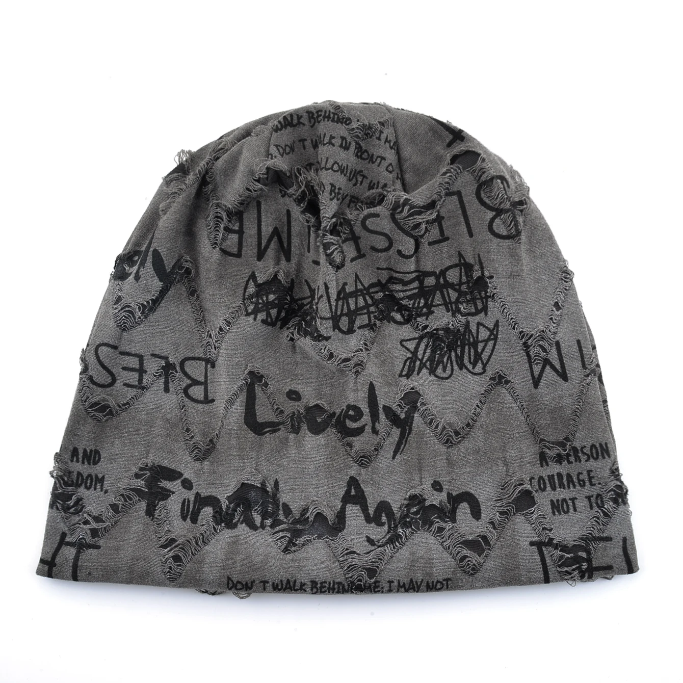 Letter Print Beanie Hats for Women Men Vintage Distressed Cracked Design ​Wasteland Style Unisex Headwear for Spring Summer