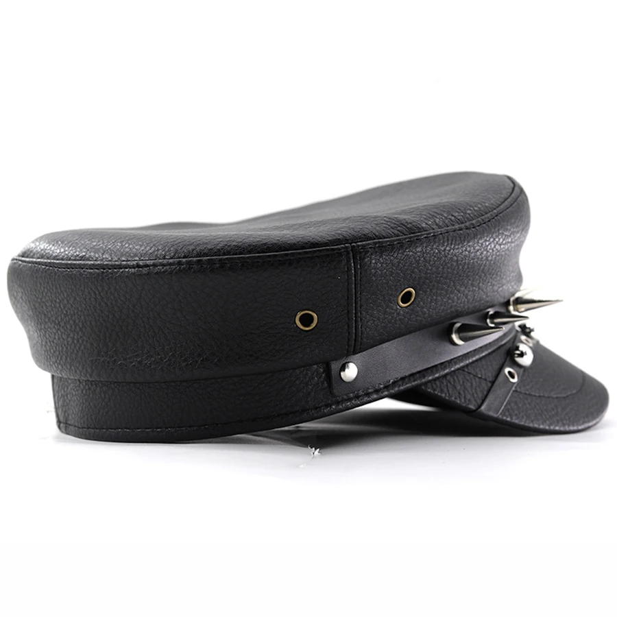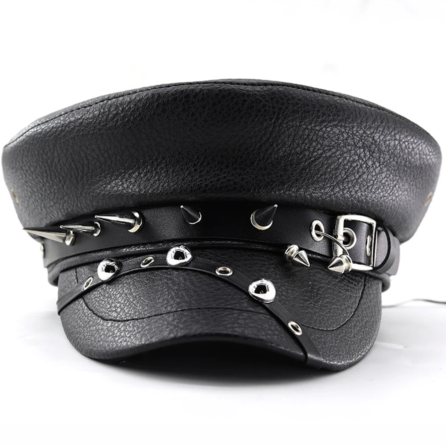 Women's Trendy Beret Black Pu Leather Flat Top Captain Military Caps Women's Accessories